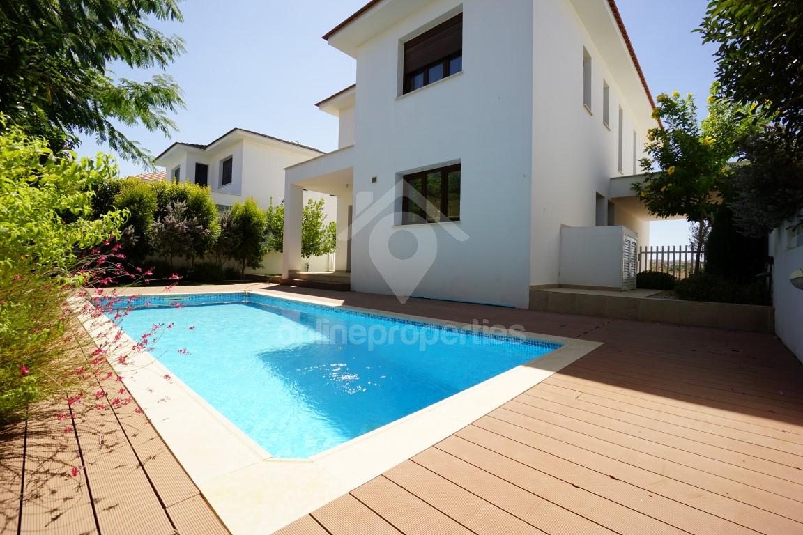 A luxurious 4 bedrooms house in GSP area in Strovolos in a new residential area. The house consist on the ground floor of a spacious open plan living room, dinning room, big kitchen with access to the garden and a quest WC. Upstairs there are 4 bedrooms, two of them en suite and an additional bathroom. There is central air condition system VRV and under floor heading.Outside there is a swimming pool, deck, BBQ area, garden covered parking ,and verandas.