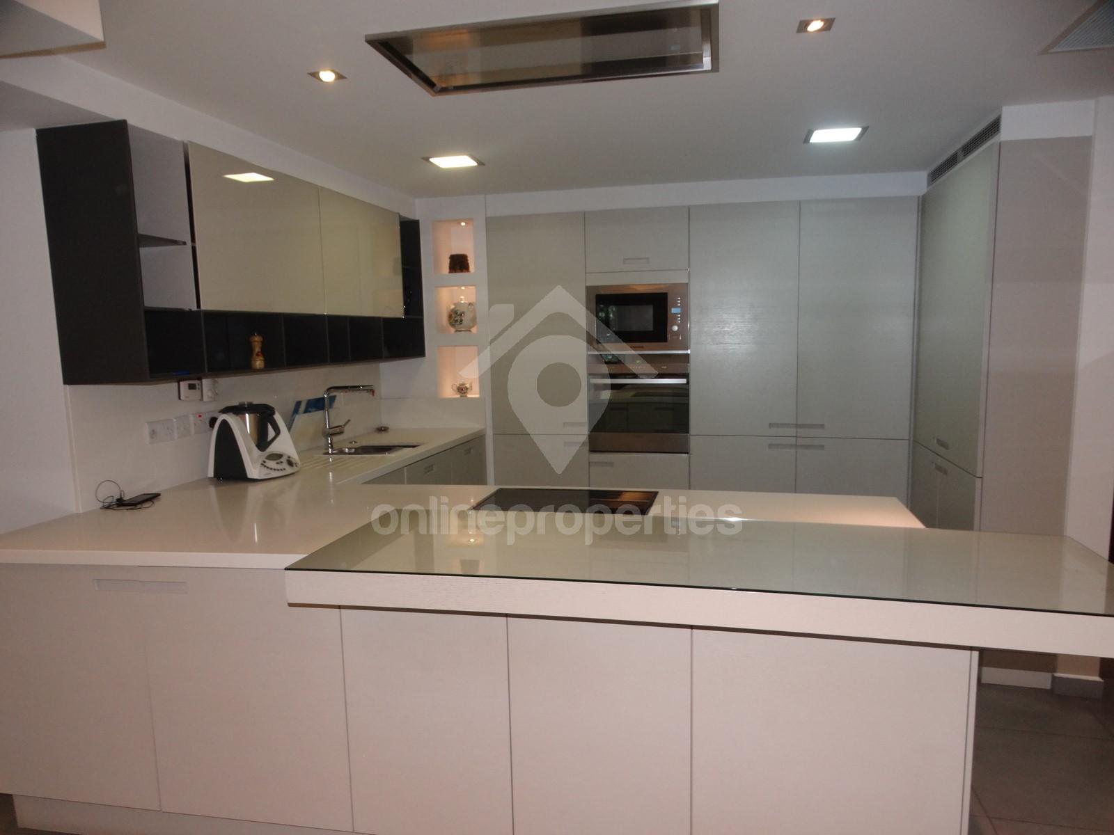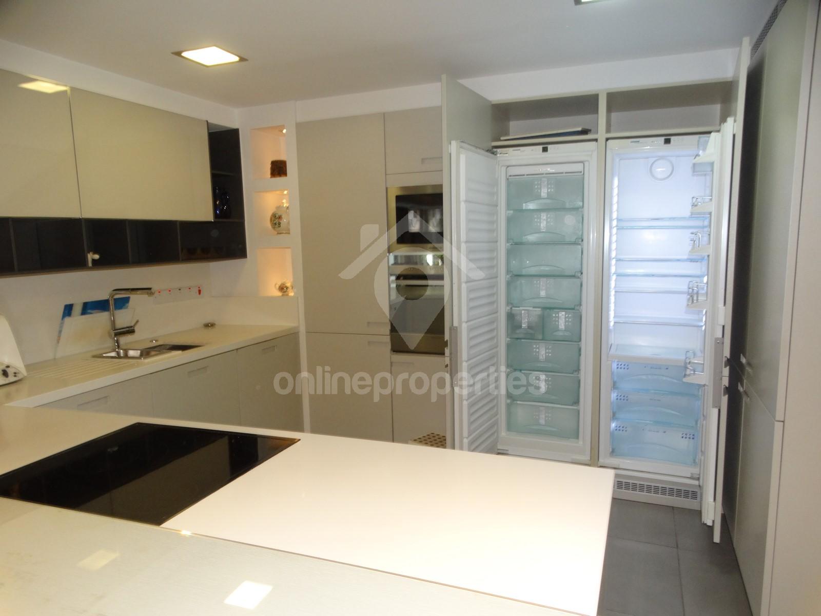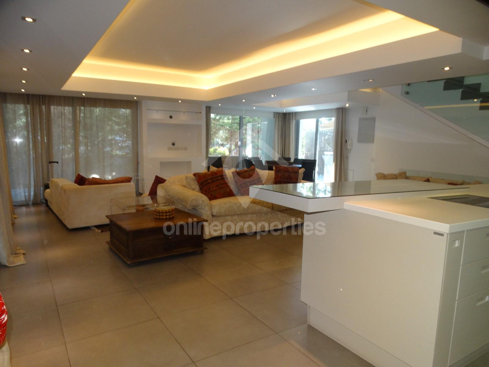 Luxury finished on a modern building maisonette apartment build in 3 levels in total covered area of about 280 sq.m. Ground floor consists of big sitting and dining areas opening from all the sited to big verandas of about 130 sq.m with privacy with fully equipped kitchen with branded electrical appliances. On the 1st floor are located 3 bog bedrooms one with big double shower and suite and the other 2 sharing full bathroom. All bedrooms are opening to a big veranda. In the "basement level there is a big sitting room which can big used also as a bedroom with shower and w/c, the laundry room and a big storage room of about 25 sq.m. Also a private veranda of about 25 sq.m . Also from the basement area there is access to the 2 private covered parking spaces of the building. The apartment has floor heating with pump, branded a/c units in all the areas, curtains and blinds in all the areas and electric shutters in the bedrooms, pressure system,solar panels and many other extras . The maisonette can become either Furnished or not .