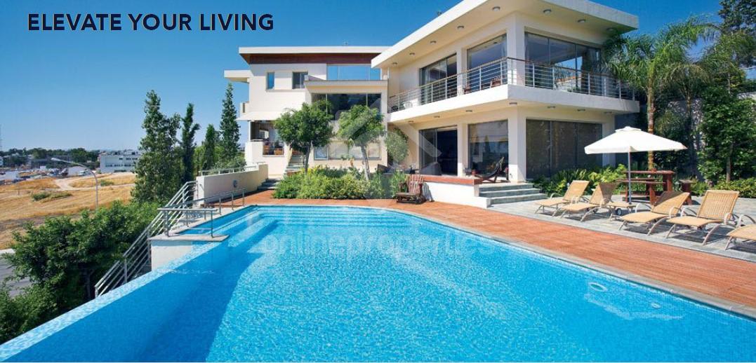 This magnificent villa is located in the most prestigious area in Egkomi, on a steep ridge overlooking the entire city with endless picturesque views throughout. As a living entity, the house lives and grows in harmony with the landscape and topography of the site. The main entrance of the house conceals the intricate change of levels at the backside; the entrance to the house is at the same level with the road while the main bedroom level is just a meter higher than that. This wonderful property is a great choice for those who value peace, tranquillity and, of course, spectacular sunsets.In order to take advantage of the slope of the plot, the house was divided into seven split levels having the stair act as the organizing element, the heart, and connector of all the spaces, both horizontally and vertically.A vanishing edge swimming pool becomes the climax to the dynamic geometry of the house as it blends with the horizon.With the exception of the wooden cladding on the underside of the winged roof, the entire house is painted in one color, allowing it - and the champagne colored window frames - to change color through the day as the sun and shade move around. Some of the main features include the following: VRV air conditioning and underfloor heating, alarm system, home automation (sound, lights, shutters), grande staircase, double glazed lift, and slide aluminum ground floor doors, anti-seismic structure and high-quality brick walls, roof with high quality insulated thermal and water insulation, p double glazing aluminum windows and doors with louvered sliding blinds into cavity walls, expensive kitchen appliances, oil boiler central heating and VRV with split air condition units, alarm system, fireplace, a fully equipped external BBQ area with pergolas, an overflow vanishing edge swimming pool 9.0x5.0m with changing room, shower and pool patio, and landscaped garden with automated irrigation system