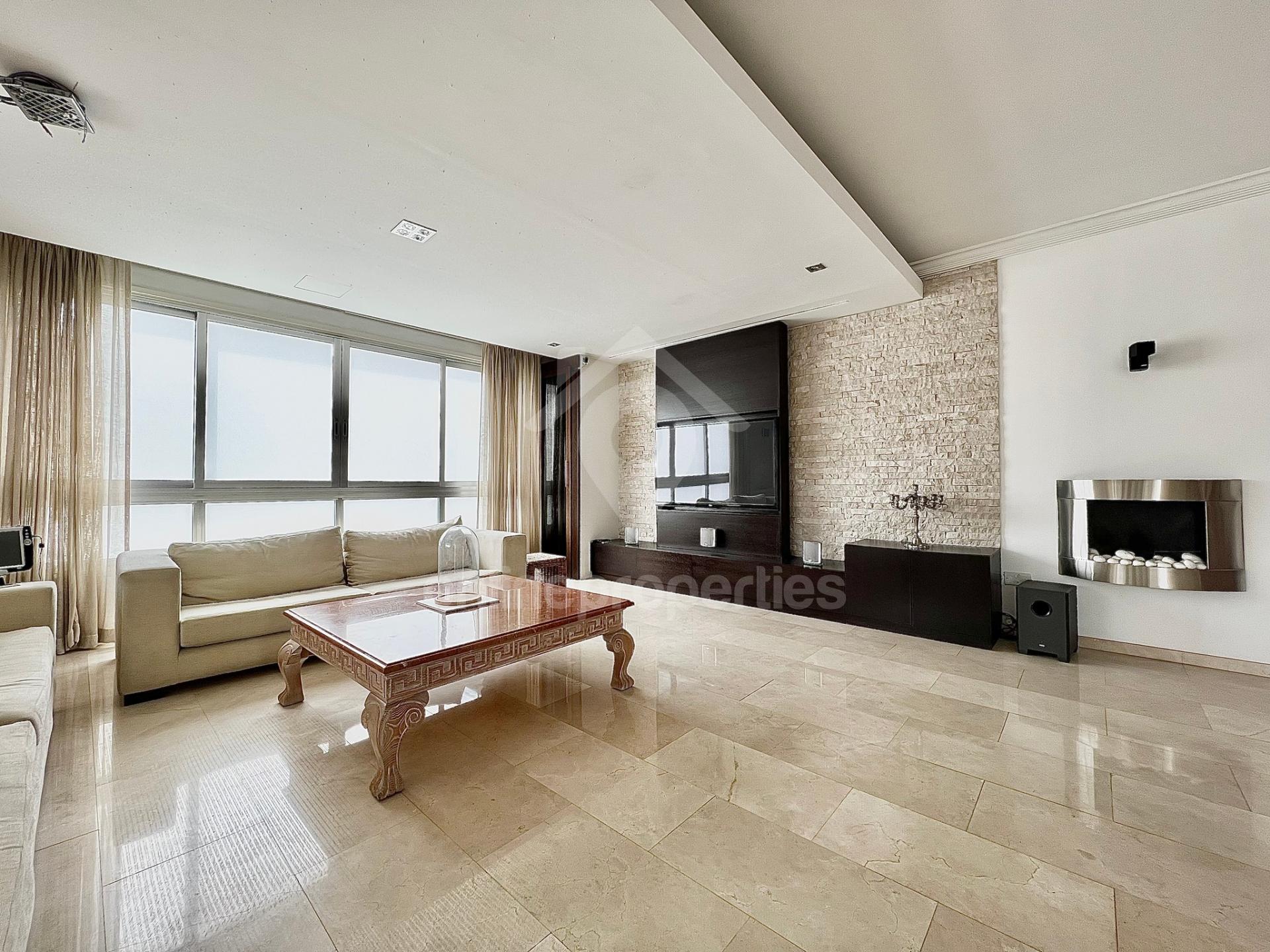 An exceptional oversized 221m2 (clear internal area) 4 bedroom apartment located within a walking distance to War Gaming building in Agioi Omologites with direct access to Nicosia Center and all directions in Nicosia. The building is on excellent condition and consists of six floor-apartments only. The flat is situated on the second floor and includes large living/dining spaces with a stone fireplace, marble floorings, and plasterboard ceilings with hidden spotlights, 4 oversized bedrooms (master bedroom en-suite), 3 bathrooms in total, and a separated kitchen with granite worktops and stainless steel appliances. The main living area is controlled by a Crestron tablet that controls lighting, shades, audio/video, and cinema screen. It also includes a complete automated audio/video setup in the flat with 6 independent audio zones with speakers (veranda, kitchen, living room, dining room, master bedroom and guest bedroom).Balcony shades are electronically controlled. The front door is controlled by an audio/video phone system. Both living and dining floor-to-ceiling glass sliding doors hide completely inside the wall. The kitchen includes Gaggenau appliances and is fitted by Interni Moda Bagno. The flat also owns 2 parking spaces with security cameras installed and a large storage room. Title deed available.