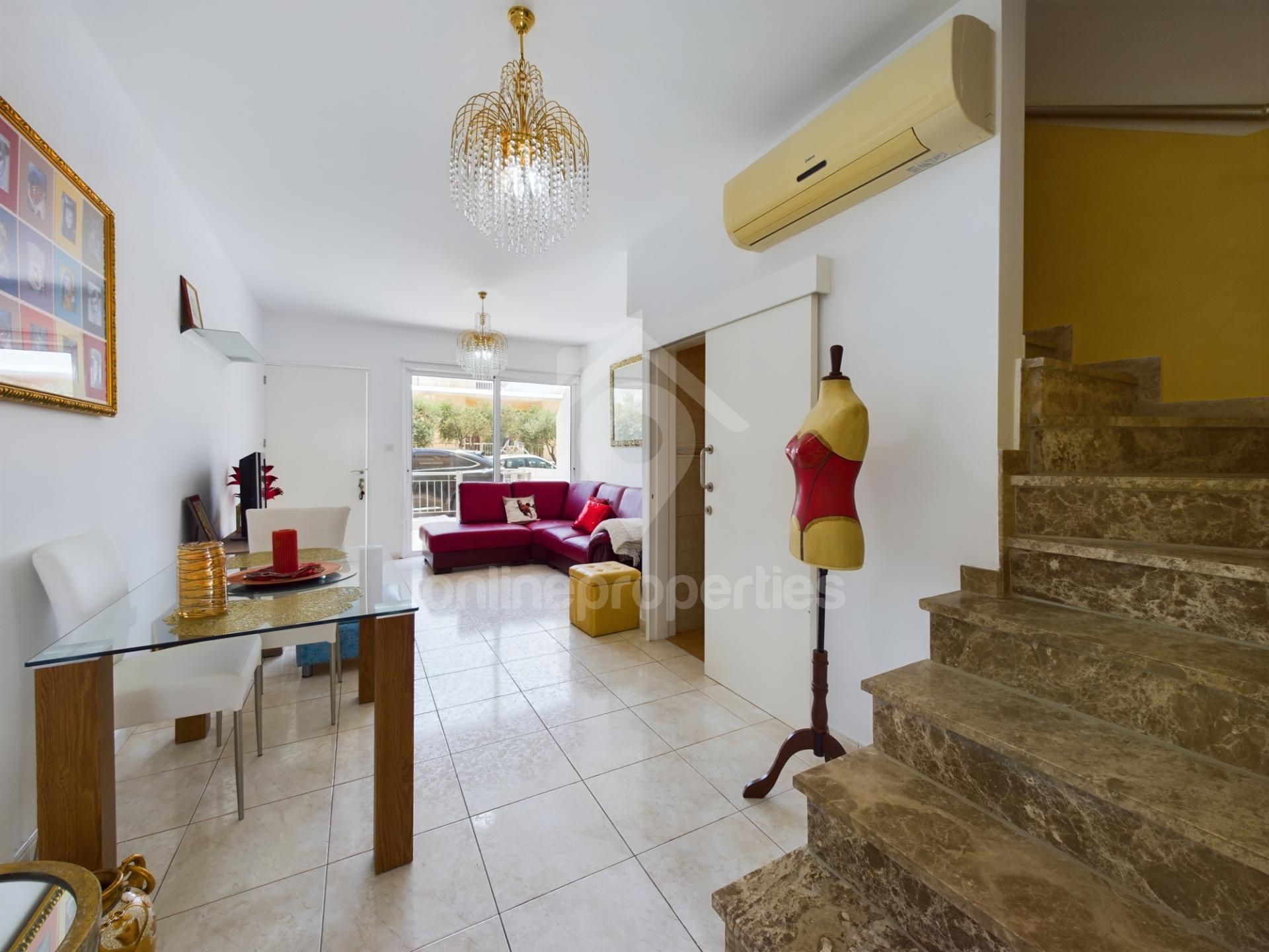 A stunning dublex apartment in Strovolos area very close to local amenities, with easy access to the center of the town and the high way.On the ground floor the open plan living area and the kitchen with a quest wc, direct access to the private uncovered parking at the back of the house. There is small patio in the entranc. On the first floor there are two bedrooms with balconies who share the family bathroom. The house is very well kept, neighborhood is very quite with lots of greenery. The living area is around 70sq.m. and the verandas around 11sq.m. and asking price 220.000 euros, no vat. Deeds available.