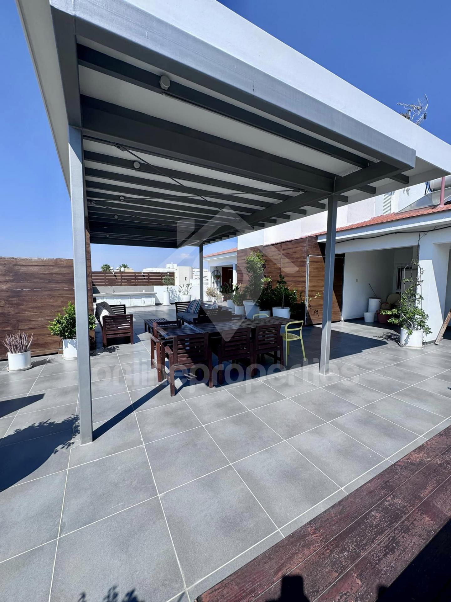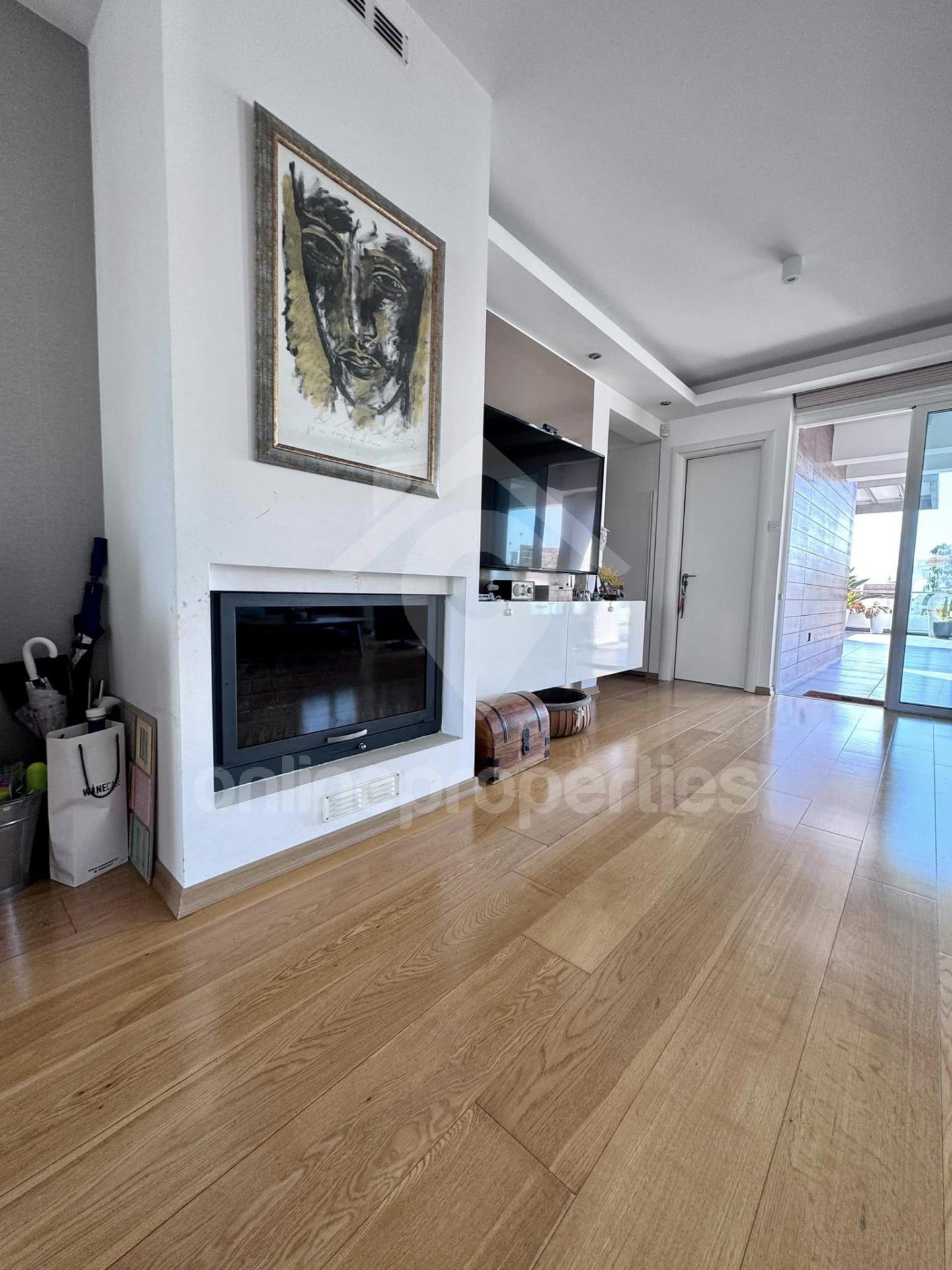 + 160 sqm private outdoor areas (2 balconies) Fully equipped kitchen with all electrical appliances (including dishwasher, clothes dryer, microwave, and 2 TVs ( living room and bedroom) Stylishly furnished with high-quality furniture A/C units (hot and cold) in all rooms Ceiling fans in bedrooms Large storage room 2 Covered parking space Intercom system with camera Security doors for enhanced safety Solar panel system for energy efficiencyPressure system Water filter system Elegant spotlights and hidden lighting throughoutFireplace Central heating system Modern and secure building with safety doors Penthouse on the 3rd floor (elevator available) Blinds on all windows Alarm system High-quality aluminum windows Barbecue area Prime location near all amenities, parks, schools, and stores