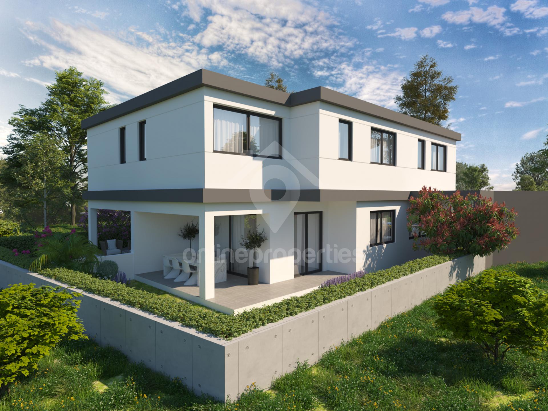 This is an elegantly designed development of two family residences, ideally situated in the heart of Lakatamia. The project offers easy access to a range of services and amenities, including shops, restaurants, schools, supermarkets, and the scenic linear park along the Pedieos riverbed.Each home features a contemporary design with spacious, open-plan interiors flooded with natural light, and is finished with premium materials throughout. The ground floor boasts a large living area, accommodating a 3-meter wide entertainment center, along with a guest WC, a dining space, and a sleek kitchen that overlooks a lush garden.A modern staircase leads to the upper level, which houses three generously sized bedrooms, a family bathroom, and a laundry area. The master bedroom includes an en-suite bathroom and a walk-in closet for added luxury.There is only one house available for sale with asking price of 345.000 euros plus vatOther Specifications energy class A Thermal Insulation Building System Thermal and Water Proof of Roof Thermal Aluminum Frames w/Double GlassPhotovoltaic System 3KWElectric Heating , provision Air Condition,provision Solar Water Heater Water Pressure SystemElectric Parking Gates, provision