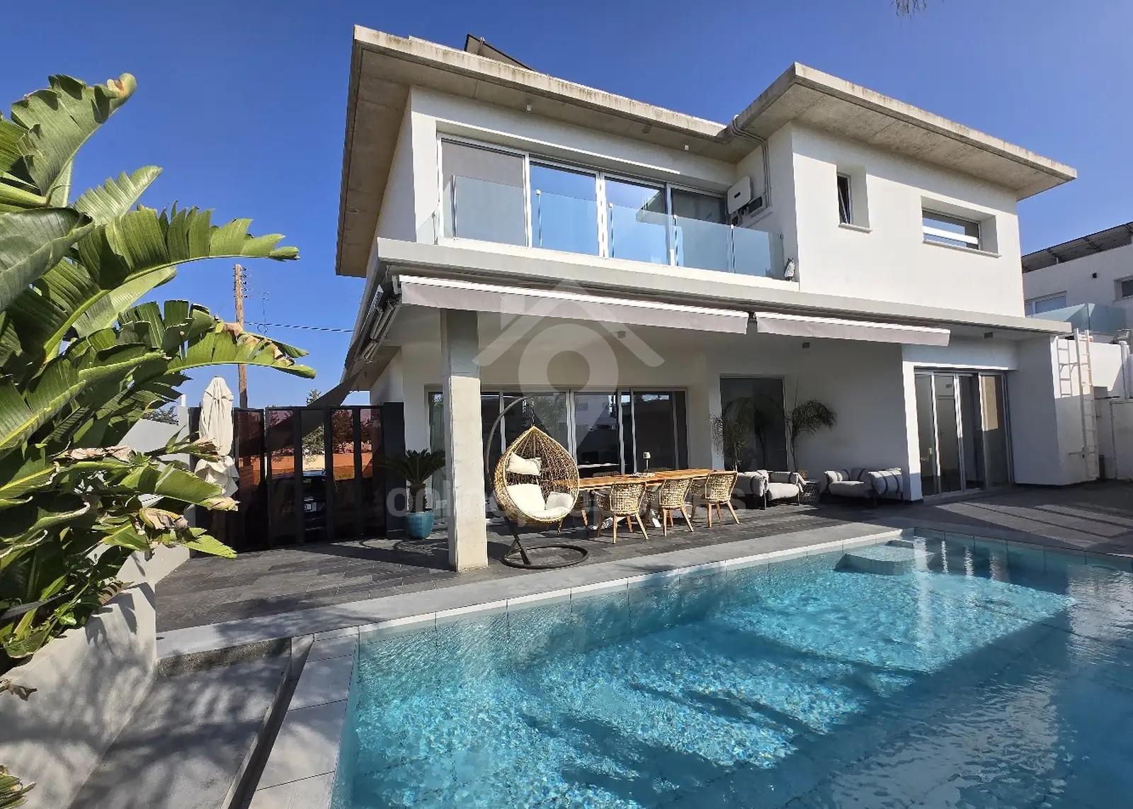Modern, eco-conscious home offering a blend of luxury and sustainability. Available from August 15, 2025. This fully furnished residence features light-filled interiors with floor-to-ceiling windows. Comprising 3 bedrooms, including a master suite with ensuite bathroom and walk-in closet, 3 full bathrooms, a guest WC, and a separate maid's quarters (located in the backyard suitable for live-in help or home office). Key features include a private swimming pool, energy-efficient underfloor heating powered by a heat pump, and a 6kW solar panel system. Equipped with 6 air conditioning units, smart home features, and an alarm security system. Includes 2 covered parking spaces and 2 storage rooms.Available fully furnished for €3,500 per month, or unfurnished (appliances only) for €3,300 per month.