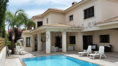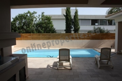 This lovely 450 sq.m. house is located in one of the most exclusive areas of Nicosia on 800 sq.m. plot of land. On the ground floor there is large living room with fireplace, TV room, dining room, a brand new modern fitted kitchen with all electrical appliances and a guest w/c. There are marble floors and a stunning marble staircase. On the upper level there is an en suite master bedroom with a spacious walk-in wardrobe, three more bedrooms with a family bathroom, another bedroom with en suite shower and an office room. All bedrooms are overlooking the swimming pool which is overflow. Additional features include floor heating, maid's room with its own shower, alarm system, air conditioning throughout, pressurized water system, split units and double glazing. Externally, it benefits from a wonderful garden with barbecue area, swimming pool with outside shower, pergola, double covered garage with electric gate and parking spaces. The house is also available with furniture.